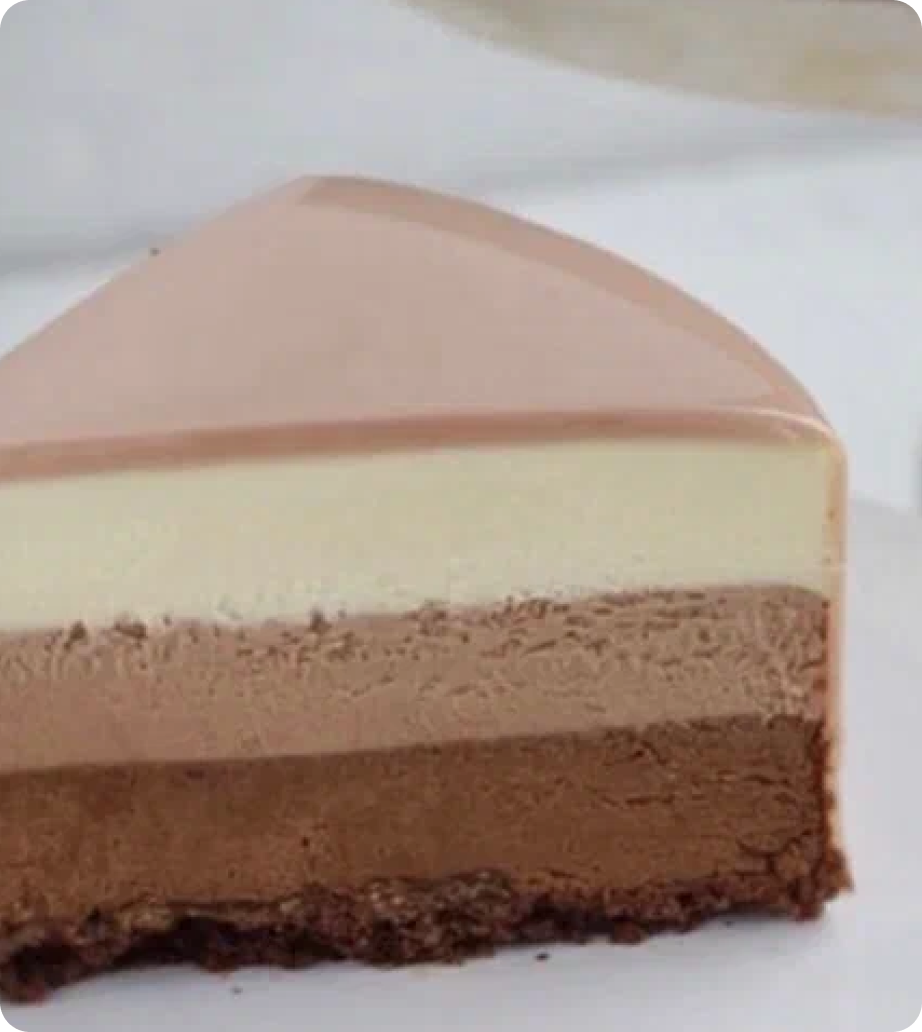 Сливки коровьи, темный шоколад, молочный шоколад, белый шоколад, молоко коровье, яйцо куриное, масло сливочное, сахар, желатин, мука пшеничная, какао-порошок, разрыхлитель, соль