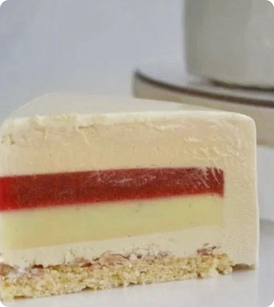 Сливки коровьи, белый шоколад, молоко коровье, малина без косточек, пюре маракуйи без косточек, яйцо куриное, масло сливочное, сахар, желатин, мука миндальная, мука пшеничная, пектин, лимонная кислота, соль